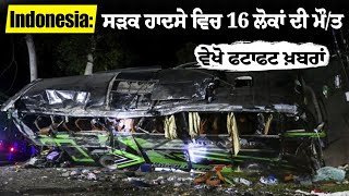 Indonesia: ਸੜਕ ਹਾਦਸੇ ਵਿਚ 16 ਲੋਕਾਂ ਦੀ ਮੌ/ਤ, ਵੇਖੋ ਫਟਾਫਟ ਖ਼ਬਰਾਂ