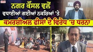 ਨਗਰ ਕੌਂਸਲ ਵਲੋਂ ਵਧਾਈਆਂ ਗਈਆਂ ਨਕਸ਼ਿਆਂ ’ਤੇ ਕਮਰਸ਼ੀਅਲ ਫੀਸਾਂ ਦੇ ਵਿਰੋਧ ’ਚ ਧਰਨਾ