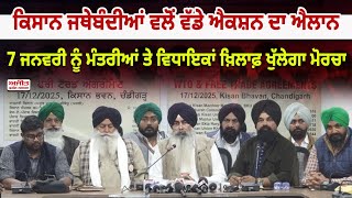 ਕਿਸਾਨ ਜਥੇਬੰਦੀਆਂ ਵਲੋਂ ਵੱਡੇ ਐਕਸ਼ਨ ਦਾ ਐਲਾਨ 7 ਜਨਵਰੀ ਨੂੰ ਮੰਤਰੀਆਂ ਤੇ ਵਿਧਾਇਕਾਂ ਖ਼ਿਲਾਫ਼ ਖੁੱਲੇਗਾ ਮੋਰਚਾ