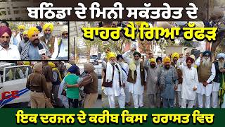 ਬਠਿੰਡਾ ਦੇ ਮਿਨੀ ਸਕੱਤਰੇਤ ਦੇ ਬਾਹਰ ਪੈ ਗਿਆ ਰੱਫੜ ਇਕ ਦਰਜਨ ਦੇ ਕਰੀਬ ਕਿਸਾ ਹਰਾਸਤ ਵਿਚ