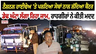 National Highway'ਤੇ ਪਲਟਿਆ ਸੇਬਾਂ ਨਾਲ ਲੱਦਿਆ ਕੈਂਟਰ