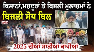 ਕਿਸਾਨਾਂ ,ਮਜ਼ਦੂਰਾਂ ਤੇ ਬਿਜਲੀ ਮੁਲਾਜ਼ਮਾਂ ਨੇ ਬਿਜਲੀ ਸੋਧ ਬਿਲ 2025 ਦੀਆਂ ਸਾੜੀਆਂ ਕਾਪੀਆਂ