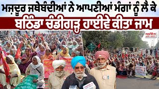 ਮਜ਼ਦੂਰ ਜਥੇਬੰਦੀਆਂ ਨੇ ਆਪਣੀਆਂ ਮੰਗਾਂ ਨੂੰ ਲੈ ਕੇ ਬਠਿੰਡਾ ਚੰਡੀਗੜ੍ਹ ਹਾਈਵੇ ਕੀਤਾ ਜਾਮ