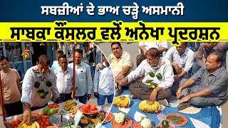 ਸਾਬਕਾ ਕੌਂਸਲਰ ਵਲੋਂ ਕੰਨਾਂ, ਗਲ਼ ਵਿਚ ਸਬਜੀਆਂ ਦੇ ਹਾਰ ਪਾਕੇ ਅਨੋਖਾ ਪ੍ਰਦਰਸ਼ਨ