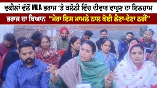 ਵਕੀਲਾਂ ਵਲੋਂ MLA ਭਰਾਜ ‘ਤੇ ਕਾਲੋਨੀ ਵਿਚ ਕੰਧ ਢਾਹੁਣ ਦਾ ਇਲਜ਼ਾਮ