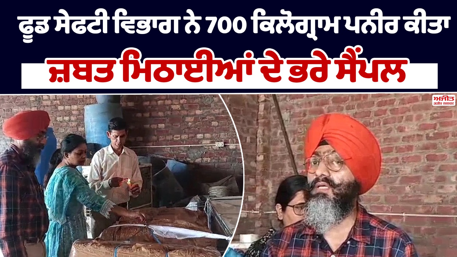 ਫੂਡ ਸੇਫਟੀ ਵਿਭਾਗ ਨੇ 700 ਕਿਲੋਗ੍ਰਾਮ ਪਨੀਰ ਕੀਤਾ ਜ਼ਬਤ