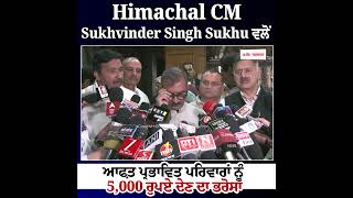 Himachal CM Sukhvinder Singh ਵਲੋਂ ਆਫ਼ਤ ਪ੍ਰਭਾਵਿਤ ਪਰਿਵਾਰਾਂ ਨੂੰ 5,000 ਰੁਪਏ ਦੇਣ ਦਾ ਭਰੋਸਾ